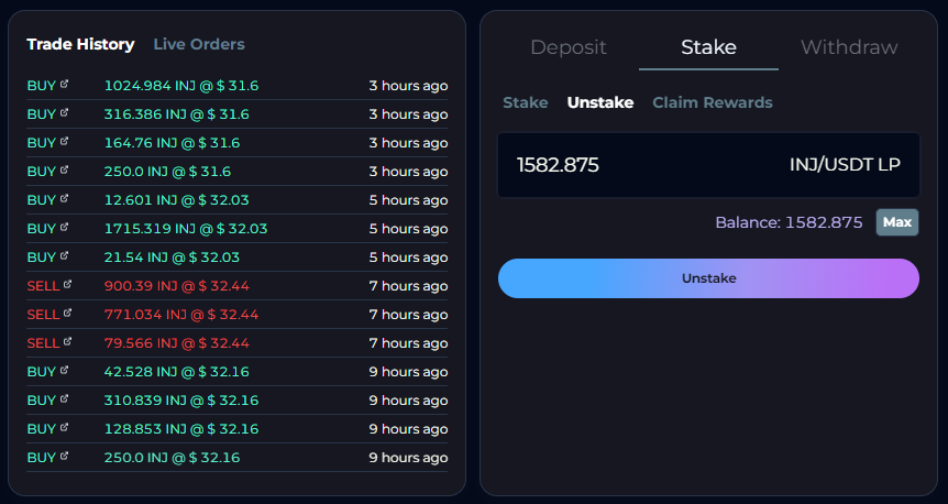 1. Head over to the [specific vault](https://trade.blackpanther.fi/vault/inj1v4hl4s7lqw84usxqhh9mhjewlwvfe5r8zygvc3) you wish to unstake your LP tokens and connect your wallet.